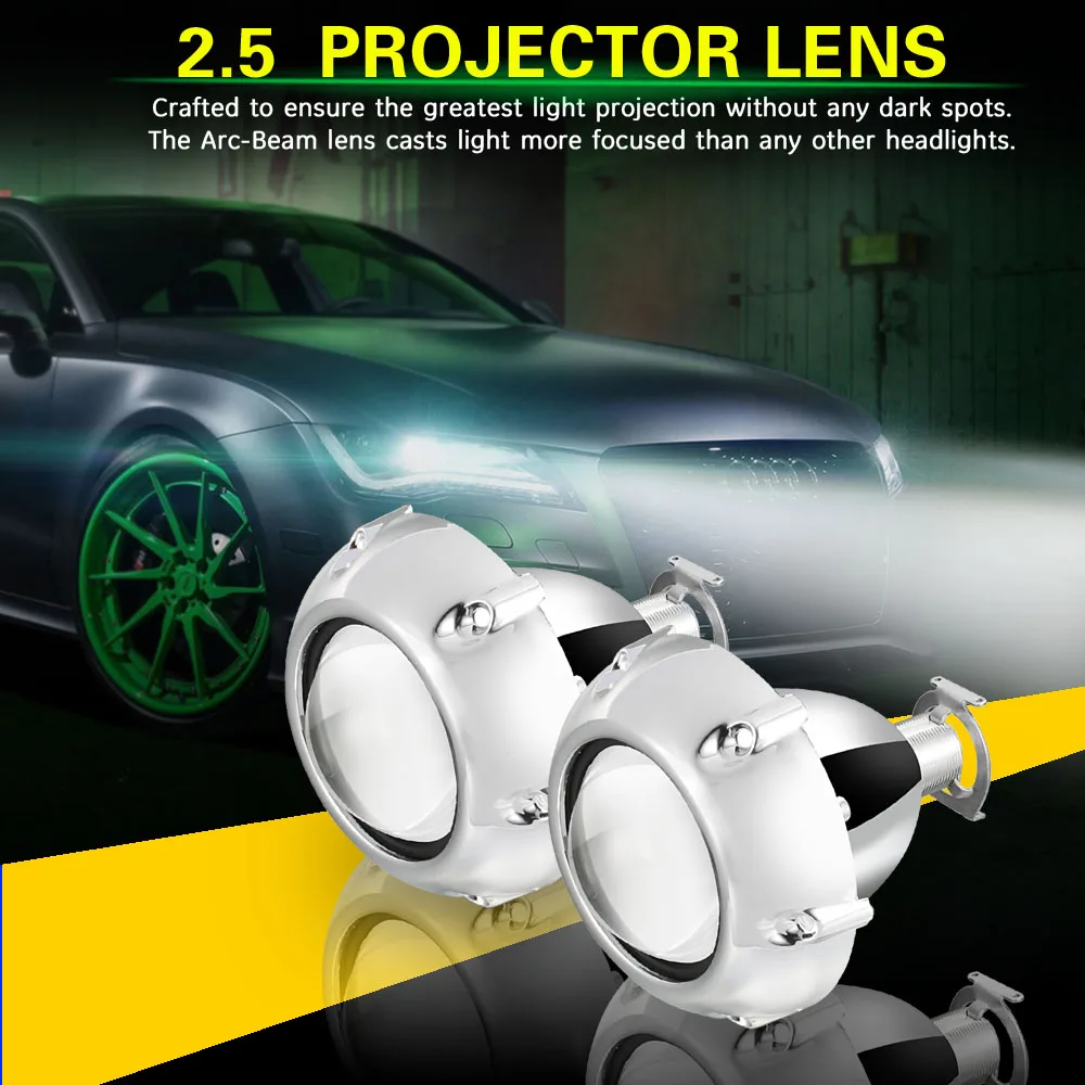 2 peças 2.5 ? universal bi xenon hid projetor lente para gtl prata shrods h4 h7 h8 h11 projetor de farol de carro para motocicleta